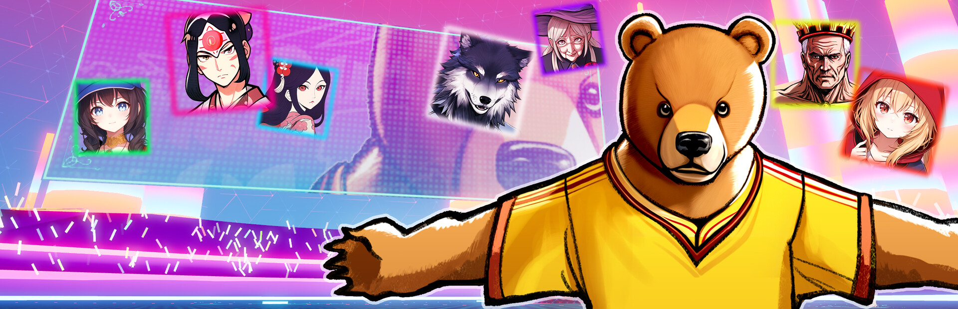 AI-generated character illustrations.