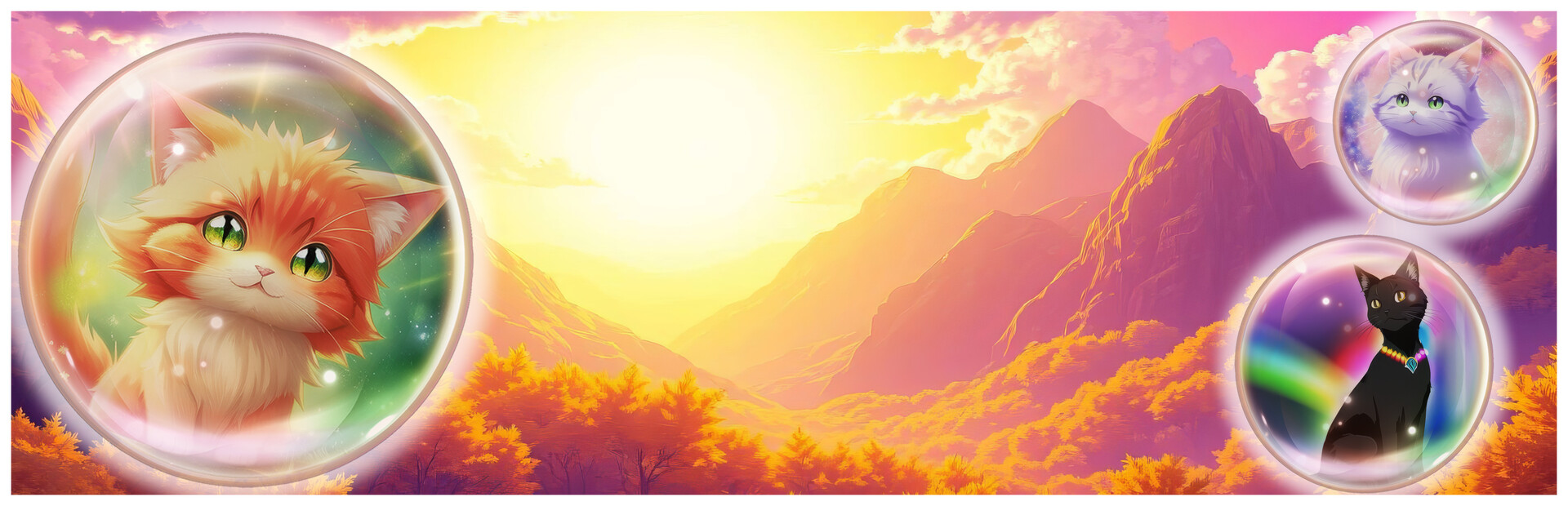 The background images and cats pictures are pre-rendered AI art